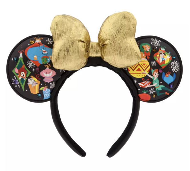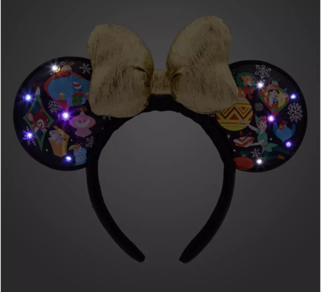 These ears are much cuter than their name sounds. They feature classic characters and holiday ornaments adorning both sides of the ears and a big puffy golden bow in the center. You can find characters like Bambi, Cheshire Cat, Stitch, and many more all over these ears making them so fun! Plus, they light up.
