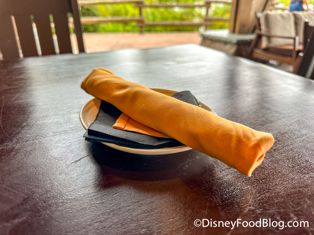 I was seated at a table and given an app plate, silverware, and a cloth napkin.