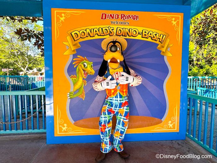 If you’re visiting Animal Kingdom, you’ll want to keep an eye out for a new character meet and greet spot in DinoLand, U.S.A.. You’ll find this spot near the TriceraTop Spin. Who’s meeting there? The one and only Goofy!