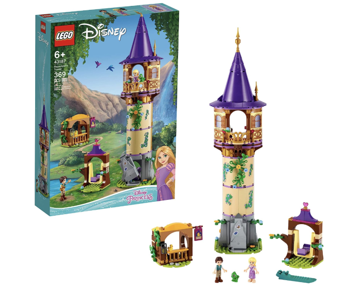 This Rapunzel’s Tower LEGO set is four levels high with four different rooms! Rapunzel and Flynn are included as part of the set, along with a little Pascal the chameleon LEGO figure.