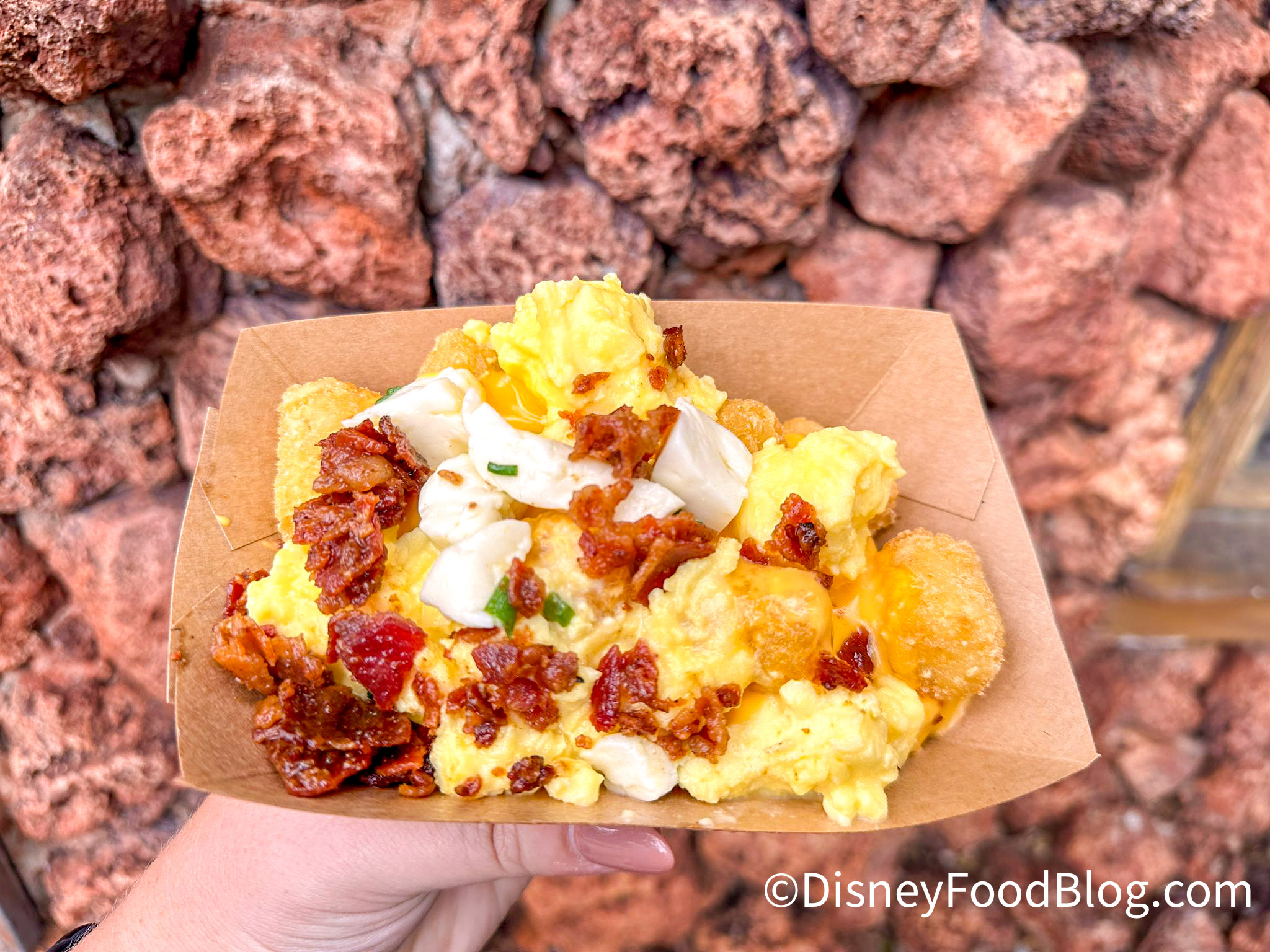 You may be wondering — how do these stack up with the Breakfast Bowl at Woody’s Lunch Box in Hollywood Studios? The main difference is that the breakfast in Toy Story Land comes topped with gravy instead of two different kinds of cheese. If you’re a cheese fanatic like we are, then we recommend this Animal Kingdom version!