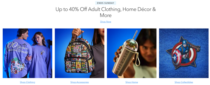 Next, check out the “Up to 40% Off Adult Clothing, Home Décor & More.“