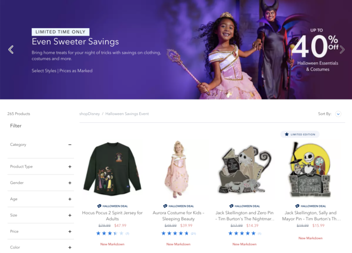 First up, check out the “Up to 40% Off Halloween Essentials and Costumes” sale.