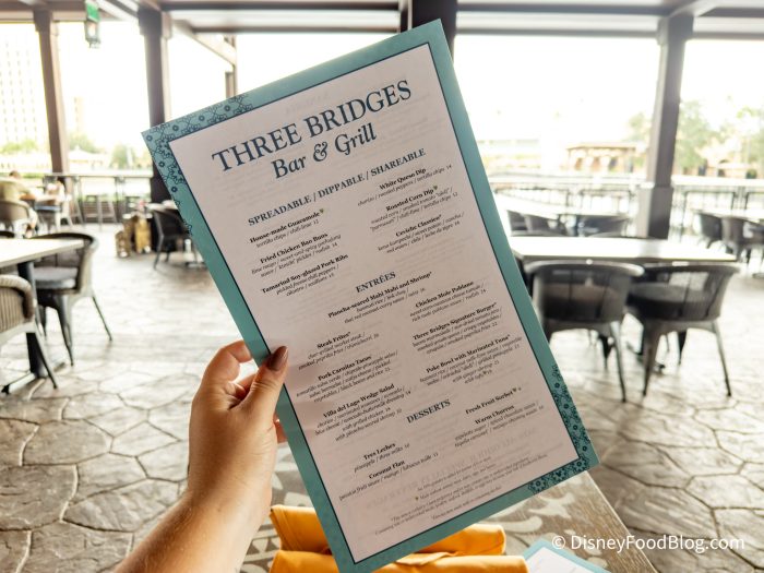 Today, we’re taking you along with us to Coronado Springs Resort for dinner at Three Bridges Bar and Grill to try some new menu items.