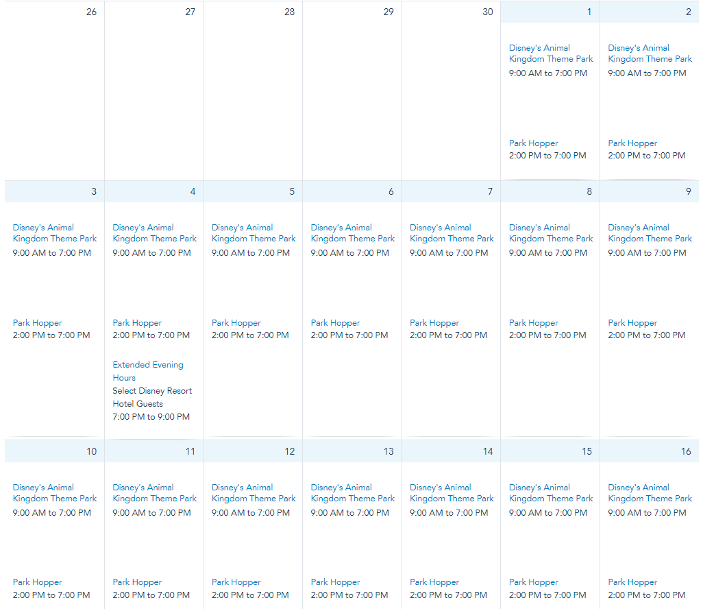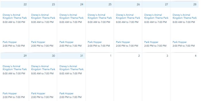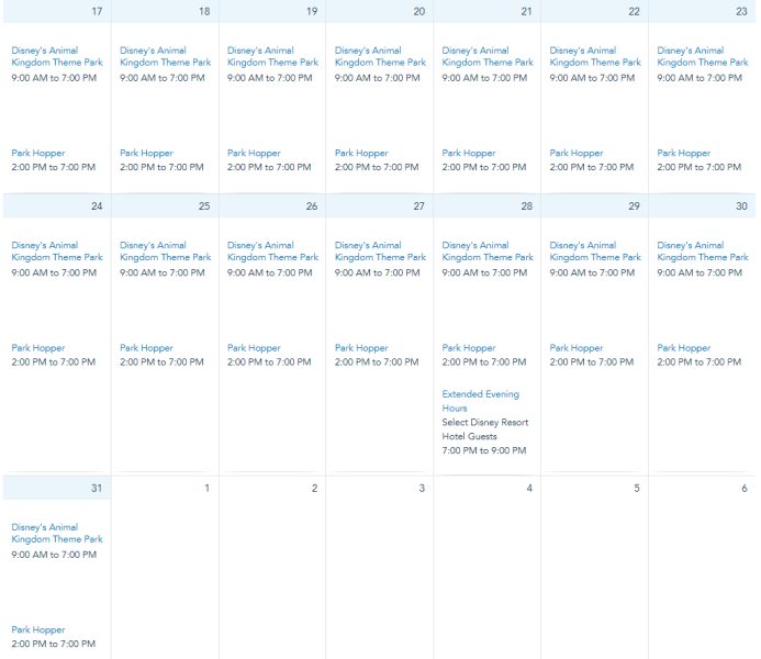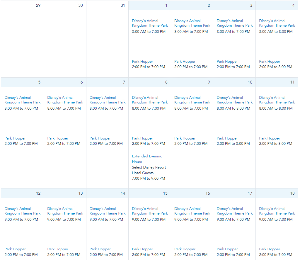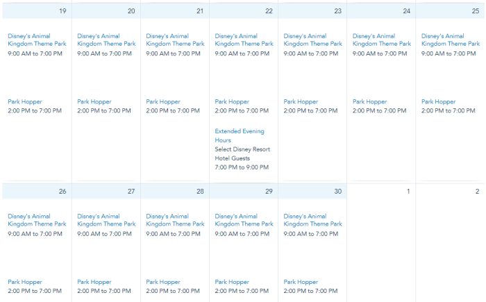 Animal Kingdom’s hours are from 9AM to 7PM on December 1st through 31st.