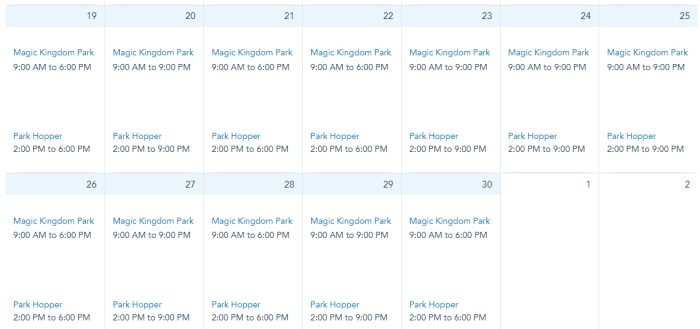 Magic Kingdom is open from 9AM to 6PM on November 19th, 21st, 22nd, 26th, 28th, and 30th. Hours are from 9AM to 9PM on November 20th, 23rd through 25th, 27th and 29th.