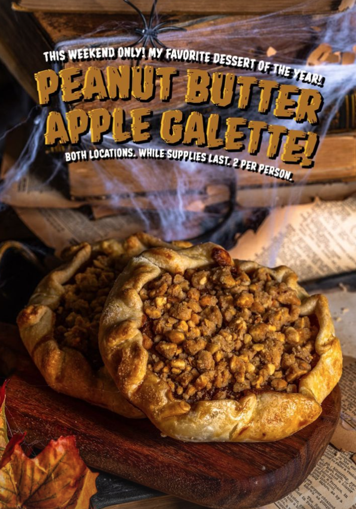 Gideon’s Bakehouse is introducing its favorite limited item of the year. It’s the Peanut Butter Apple Galette made with Gideon’s peanut butter sauce, baked with fresh-cut apples wrapped in a buttery housemade pastry and topped with crunchy peanut butter crumbs.