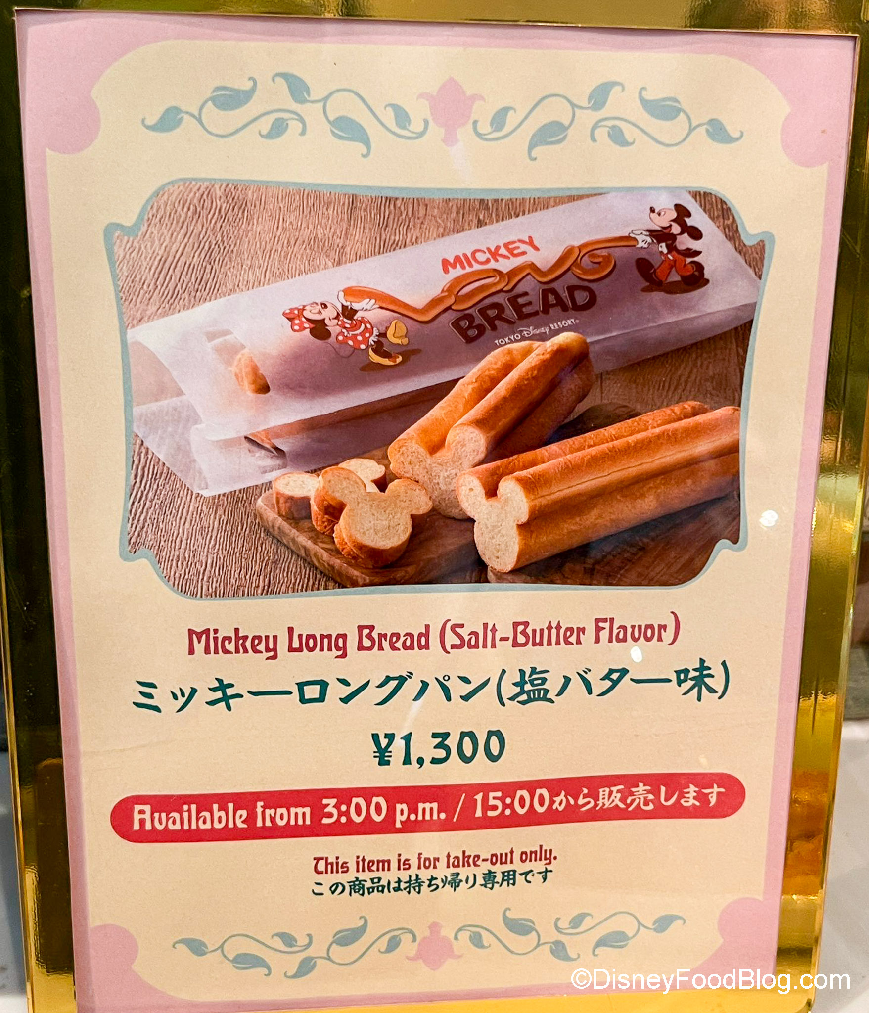 Okay, so we know you can get Mickey Sourdough Bread at Disney California Adventure, but let’s talk about the Mickey Bread at Tokyo Disney Resort. It’s Mickey Long Bread, a “butter and salt” flavored baguette — shaped like Mickey Mouse! You can get it from Mama Biscotti’s at Tokyo DisneySea.