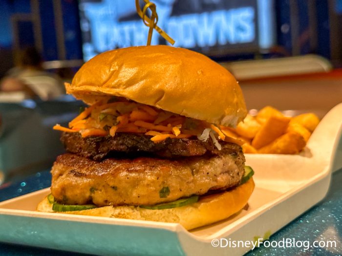 Sci-Fi debuted several new eats, and we had to try them all. First up, we had the Bánh Mì Burger for $23. This is a grilled house-made pork patty topped with roasted pork belly, pickled vegetables, cucumber, herbs, and a sriracha aïoli.