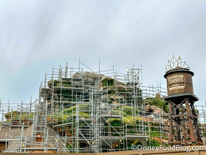 The new ride will reopen sometime in late 2024. We’ll be watching for more updates on the reopening timeline. The tree at the top of this ride has been removed as Disney continues construction, and several new rock structures have been built at the bottom of the drop. The queue area is being re-done, and we recently saw some concrete added in this space.