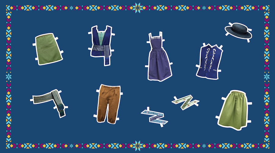However, there is a defining theme behind each piece: they’re all inspired by traditional Norwegian bunads. Note that the vests are even reversible (!!!), while all the other pieces are interchangeable. There are a total of five different shirts, multiple pairs of breeches, accessories like hair clips and scarves, and more. There are also some cute sunflower hair clips that will actually be available for visitors to purchase in a World of Frozen shop.