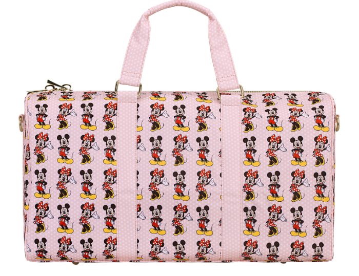 You can also get this fun Mickey and Minnie print in a duffle bag, which makes a great overnight bag — or even a good carry-on bag. It’s made with printed nylon and has a zipper at the top with a removable and adjustable shoulder strap.
