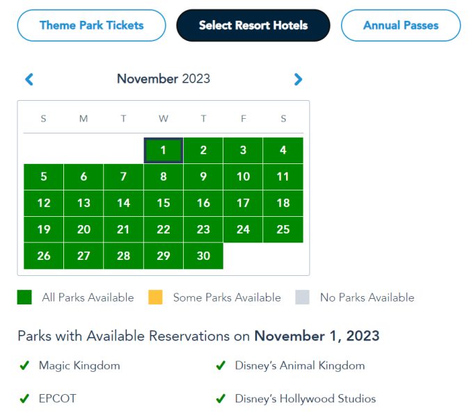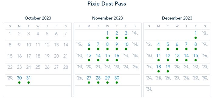 Finally, those with a Pixie Dust pass have park pass reservations available, except for the weekend. There are also a lot of blackout dates through November and December.