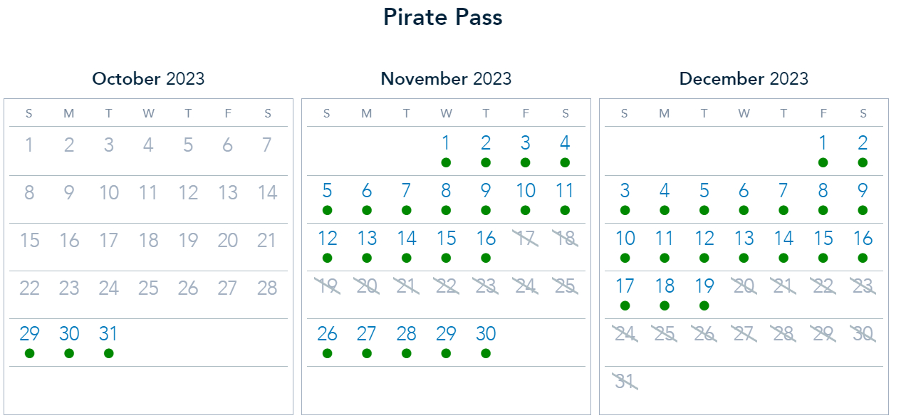 The Pirate Pass also has next week open for park pass reservations. Again, note the blackout dates around the holidays.
