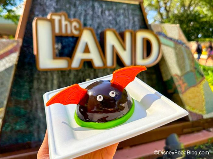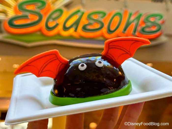 But we digress; the new treat is Bat Mousse, and it’s made with tri-colored layers of Candy Corn-flavored White Chocolate Mousse with Dark Chocolate Glaçage and “Bat” Wings. Yep, now they’re bat wings and not Figment wings. 😂 Points for creativity, Disney!