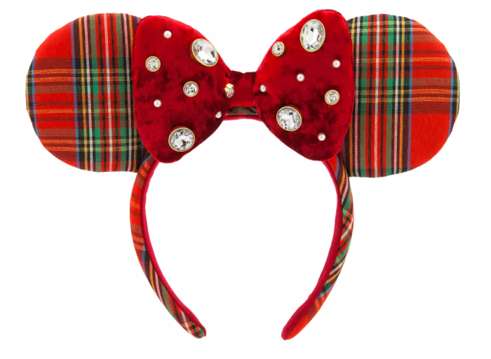 And of course, you’ll want the ears to match! The Mickey ears and headband themselves have the same plaid pattern, but the iconic Minnie Mouse bow is a red velvet studded with rhinestones. Faaaancy! We have a feeling these are going to be pretty popular this year.