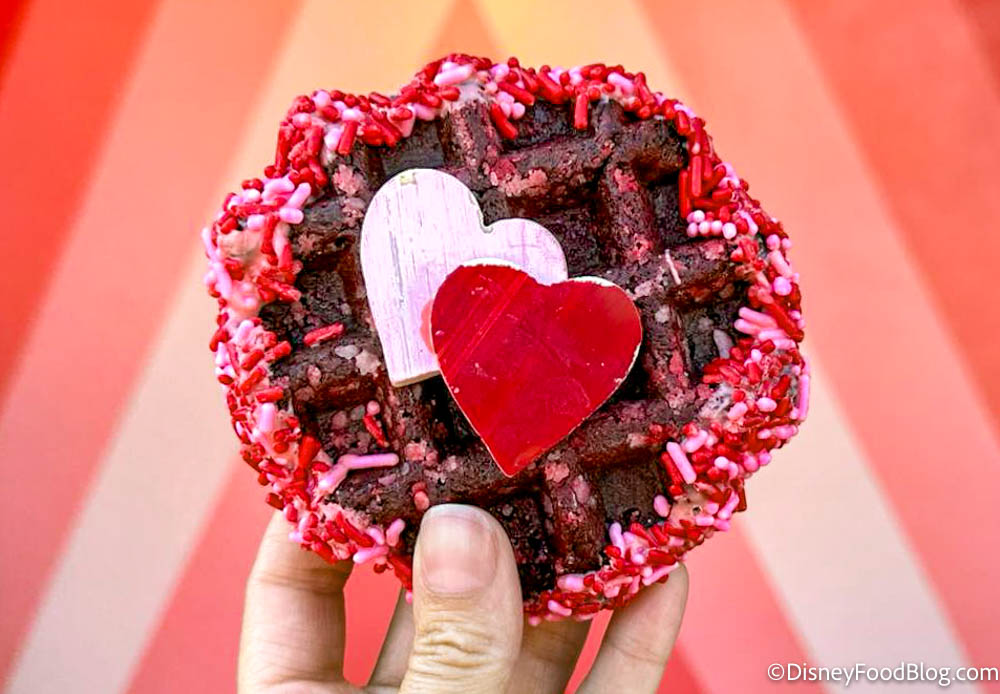 We tried the Valentine's Day version of this popular waffle treat in EPCOT!