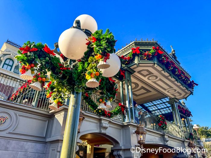 Halloween is officially over in Disney World, which means Magic Kingdom is on to the next holiday — actually, the next holiday because we are skipping over Thanksgiving and going straight to Christmas. Overnight, the park got a holly jolly makeover and is decked out in red and green — come take a look!