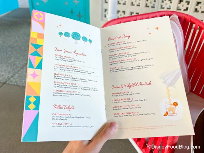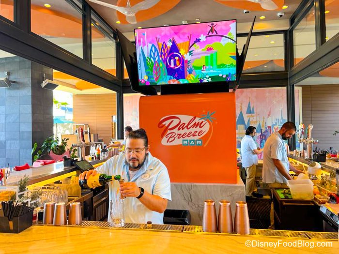 You’ll find a nice breezy outdoor spot to dine when you arrive. Our server told us that Disney chose the name Palm Breeze for the bar because Walt Disney liked to vacation in Palm Springs.