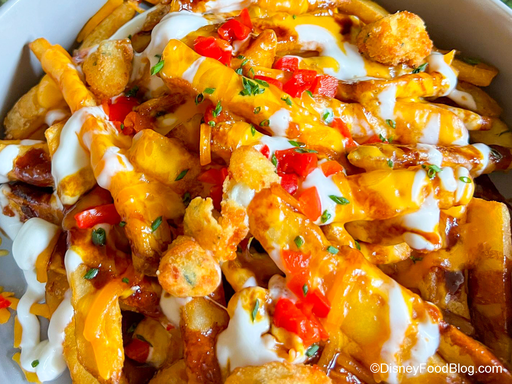 Okay, so let’s talk about the food here. The Cheese Fry Poutine for $19 is made with Demi-Glace, Cheese Sauce, Chive Sour Cream, and Pimento. Okay, this was INCREDIBLE. It’s got the fried cheese curd plus all that extra cheese. It’s a cheesy take on poutine with a LOT of cheese, and well, you know that’s our weakness, right?
