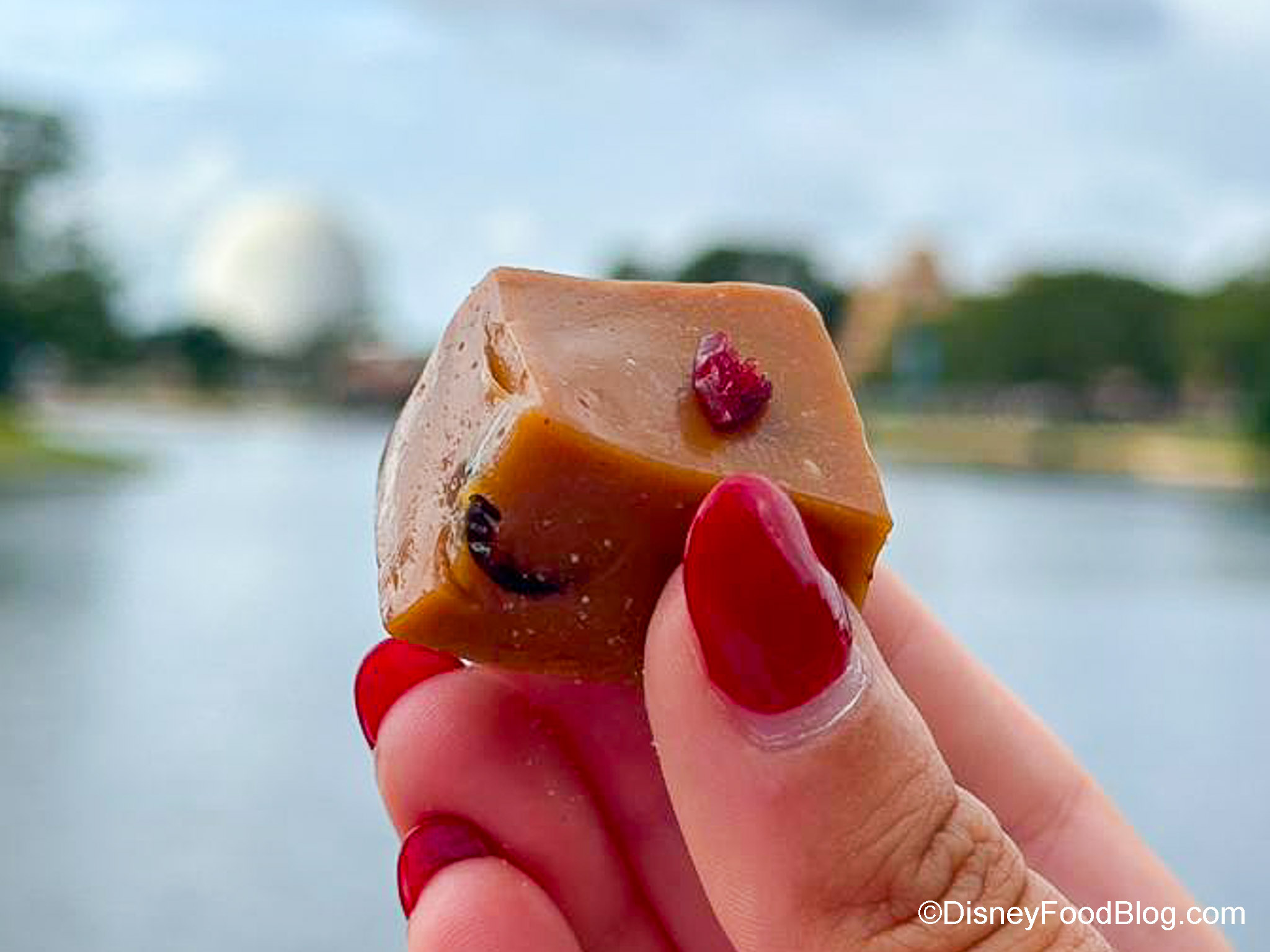The Cranberry square has actual cranberries in it, so you get a fruity cranberry flavor mixed with caramel. However, you only get that flavor if you take a bite that has actual cranberries in it.