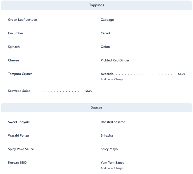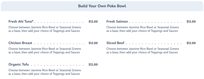 If you’re feeling creative, you can also build your own Poke Bowl. Choose a protein, like Fresh Ahi Tuna, Fresh Salmon, Chicken Breast, or Sliced Beef.