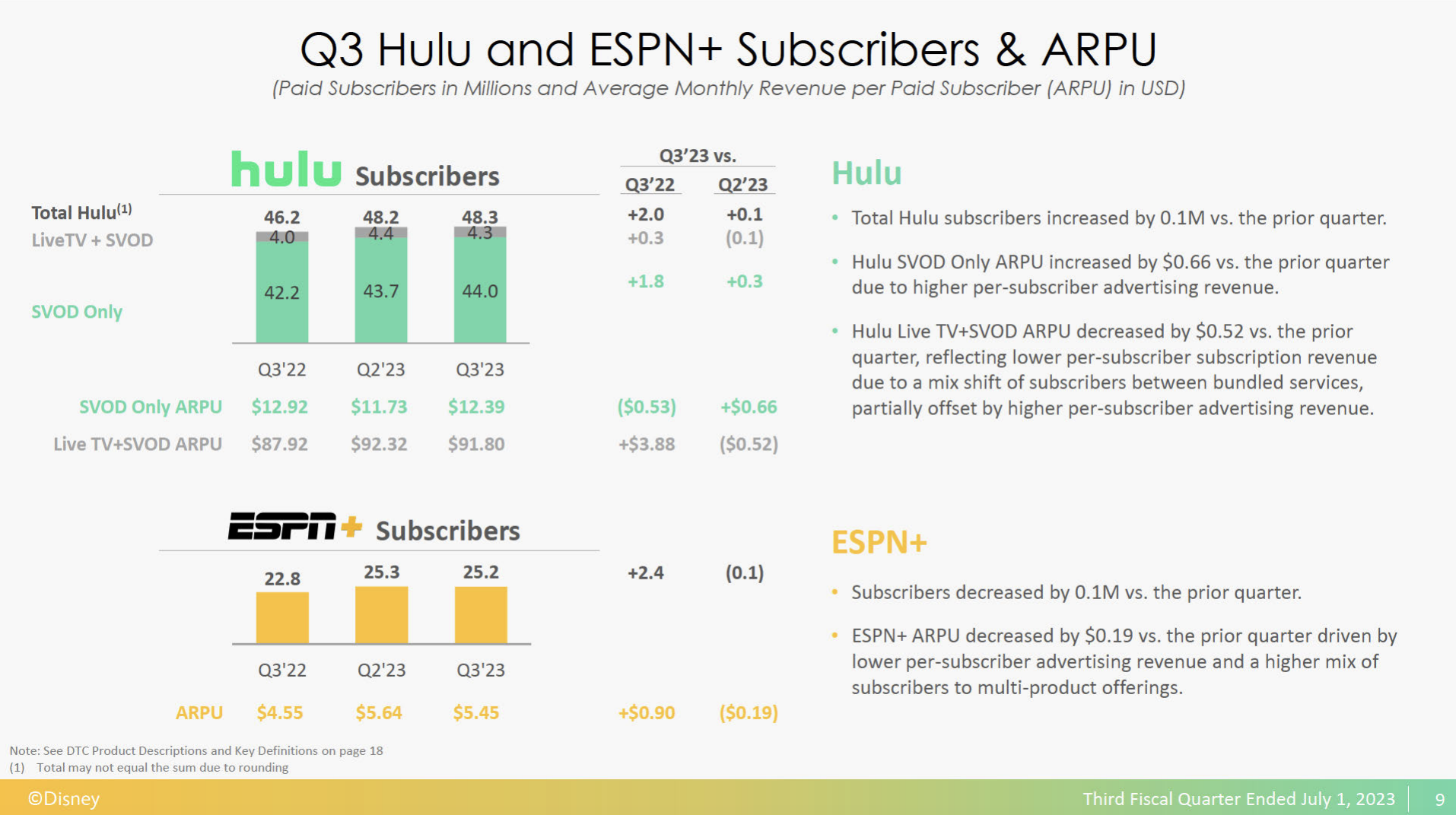 During the Q3 2023 earnings call, Iger said Disney’s streaming business is still young when justifying the platform’s struggles but we’re starting to inch into adulthood when it comes to Disney+. Disney reported that “Direct-to-Consumer revenues for the (third) quarter increased 9% to $5.5 billion.” Despite subscriber loss, Disney still cashed in on monthly revenue, with monthly increase “from $7.14 to $7.31 due to higher per-subscriber advertising revenue.”