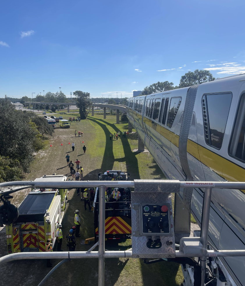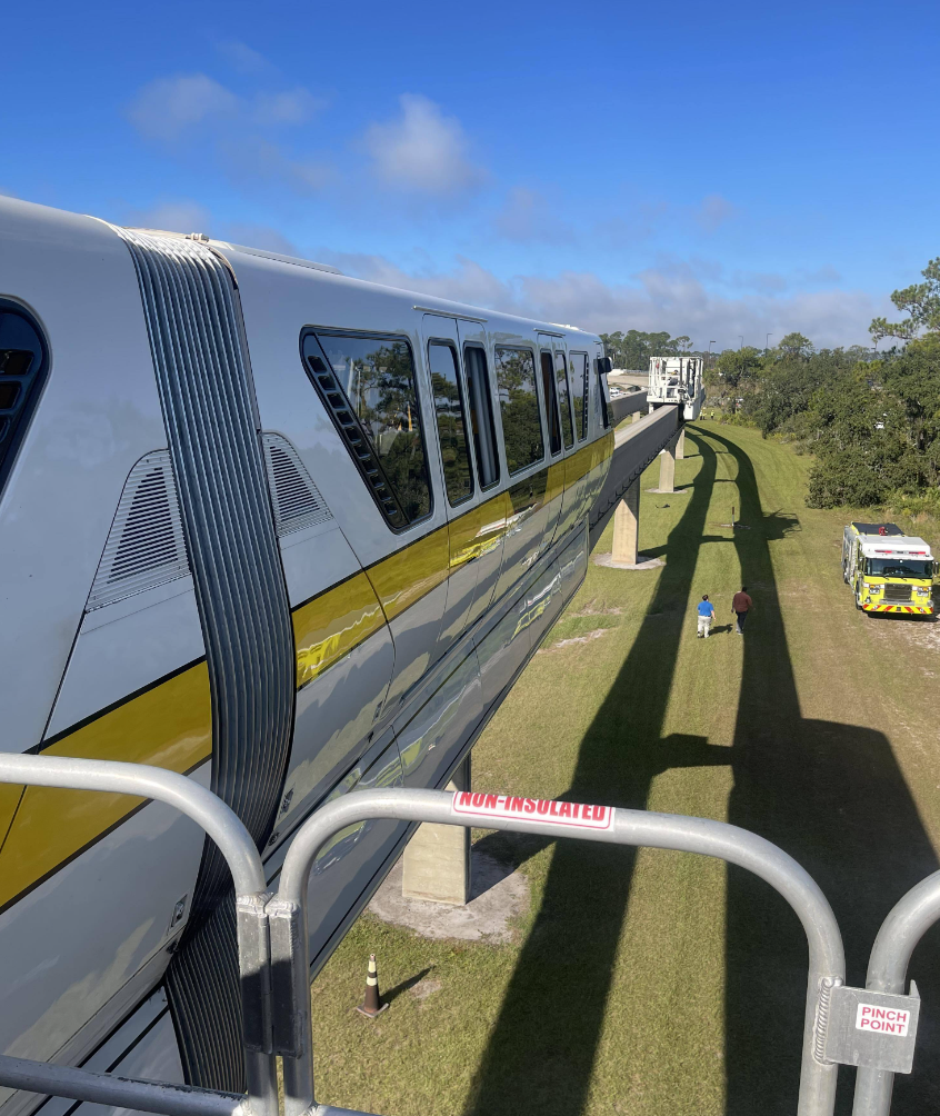 On October 31st, a Disney World Monorail train stalled due to a flat tire, trapping passengers inside towering above the ground. We were on our way into the parks and happened to see a flurry of emergency vehicles whizz by to head to the accident scene and assist.