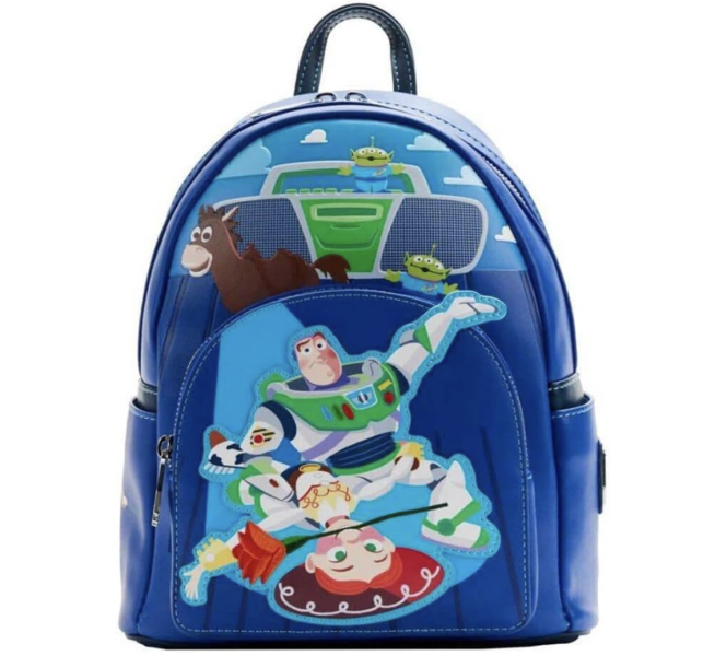This is the perfect Loungefly backpack for fans of Disney x Pixar’s Toy Story! The bag is made of faux leather and has a front zipper pocket.