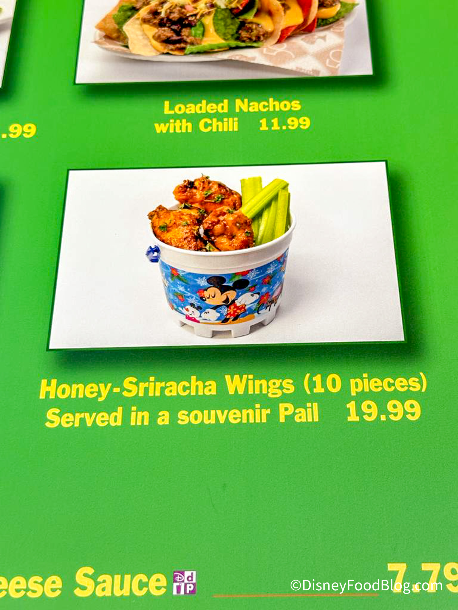 There are some new treats at Blizzard Beach now, too! Over the Warming Hut there are now two new flavors of wings. You can get a bucket of 10 Honey-Sriracha wings.