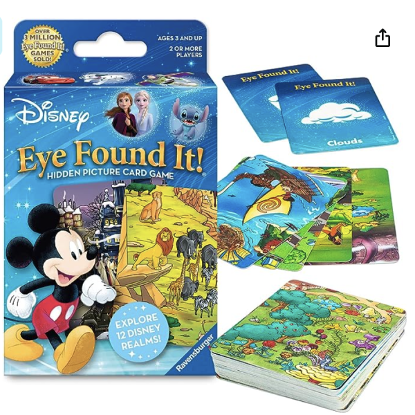 For your younger family members, they might enjoy this fun kids’ game, Eye Found It–a hidden picture card game. It features 12 Disney realms to explore. It could make a great distraction on a long car or plane ride to Disney World!