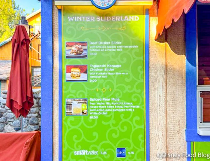 We can’t wait to eat our way around the Festival of Holidays at Disney California Adventure, and we’ve started to see some of those booths along with menus and prices pop up around the park. Winter Sliderland has arrived…