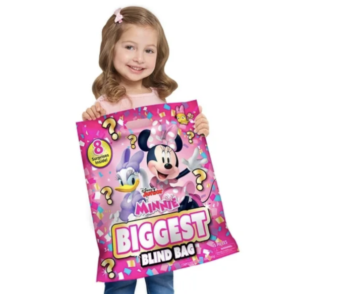 This giant blind bag is themed to Minnie Mouse and friends and comes with eight different surprises inside! These could include plushes, stickers, fidget toys, and more!