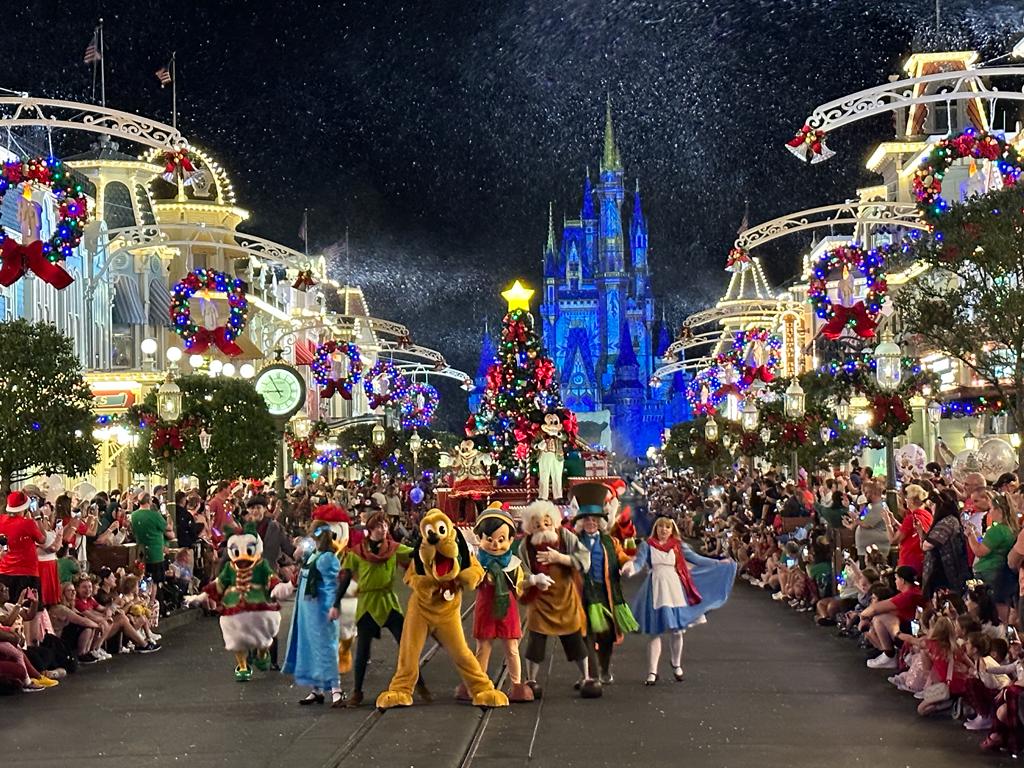 Mickey’s Once Upon a Christmastime Parade boasts an impressive roster of iconic Disney characters, including the main mouse himself, Mickey!