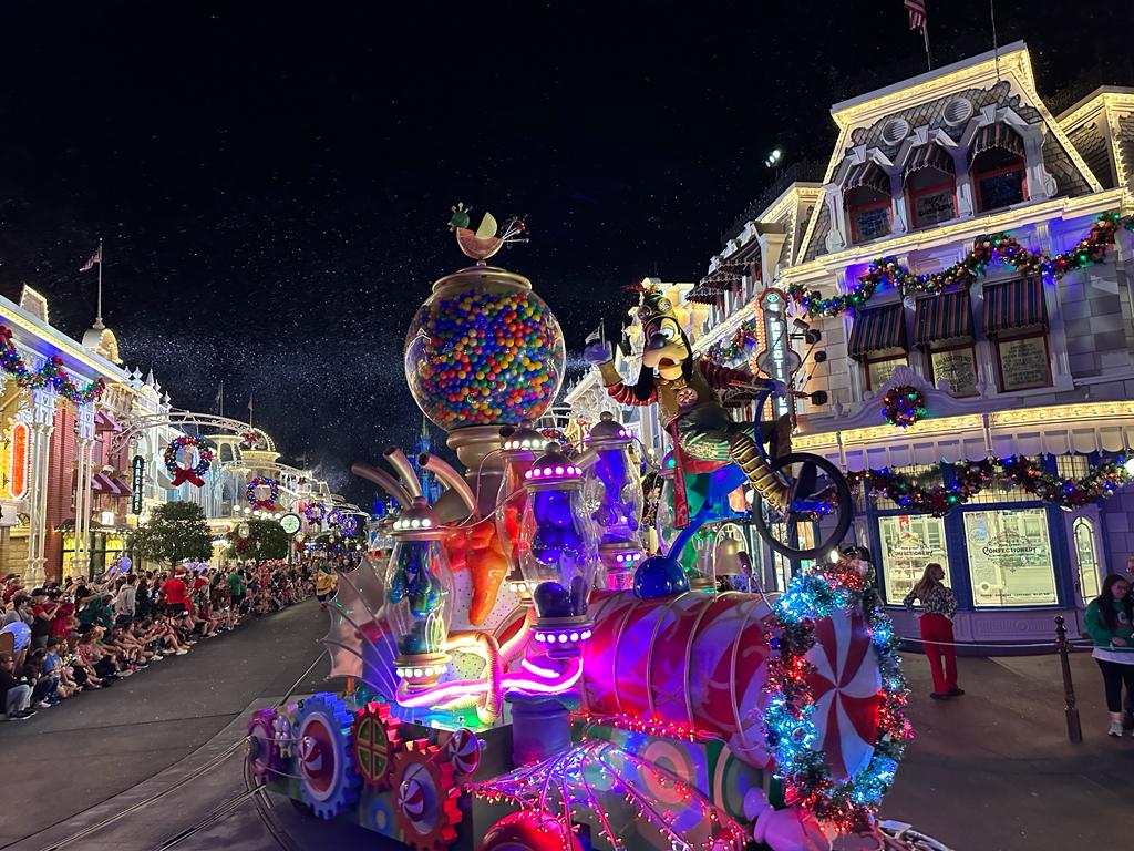 Mickey’s Very Merry Christmas Party is BACK! The holiday celebration will be held on 25 select nights from November 9th through December 22nd and features unique shows, holiday dance parties, and a fireworks spectacular. Some rides — including Space Mountain and Jungle Cruise — will have holiday overlays! Guests will get to meet some of their favorite Disney characters in their best holiday attire while experiencing a simulated snowfall. With all that said, we’re here to show you a first look at one of our favorite aspects of Mickey’s Very Merry Christmas Party — the parade!