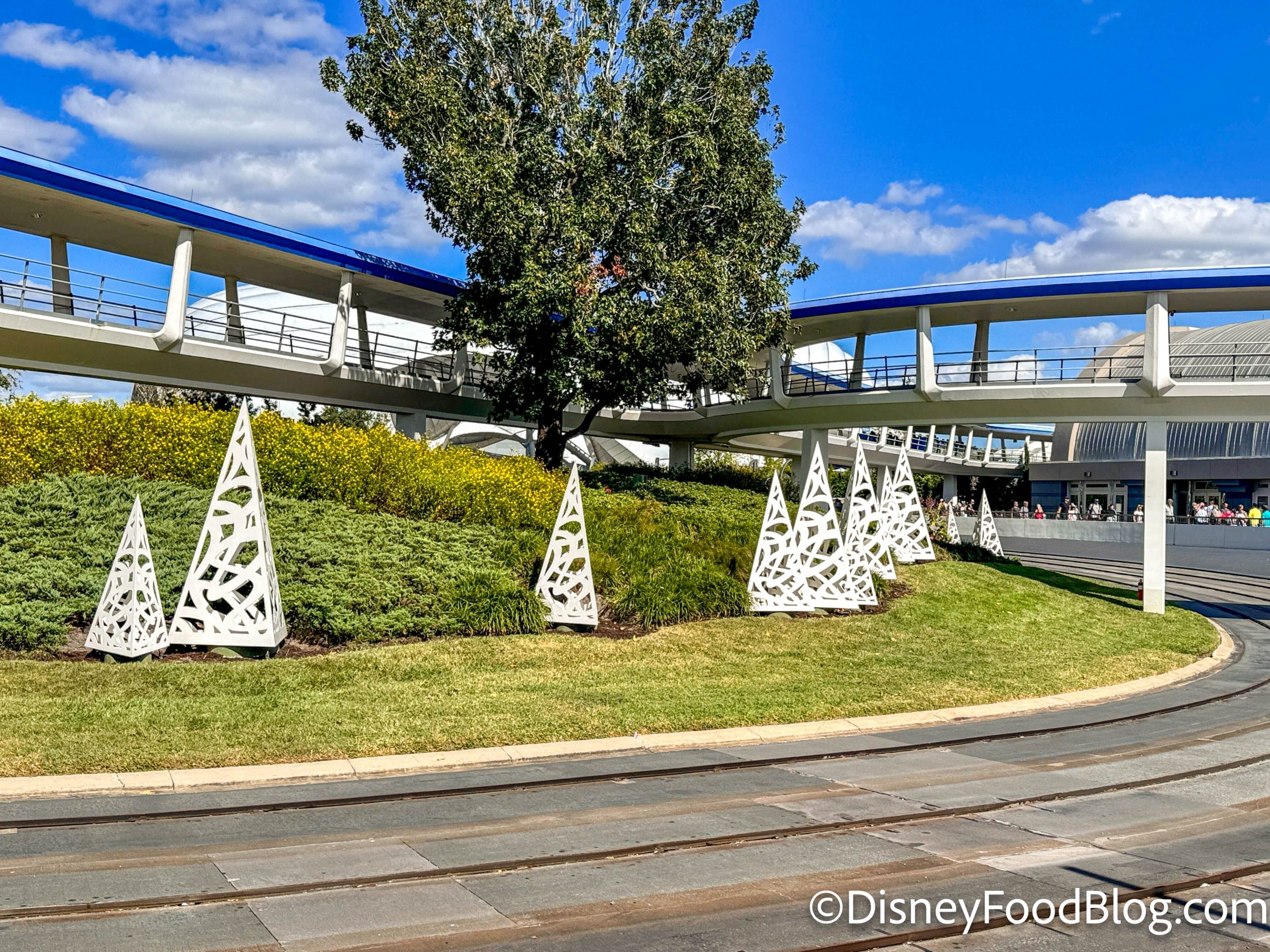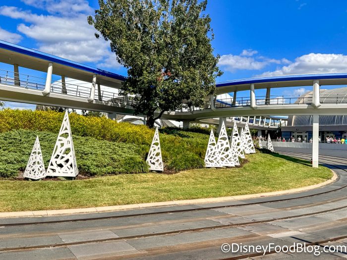 Throughout Mickey’s Very Merry Christmas Party, you’ll see some fun Christmas decor like the trees shown above (which you’ll also see during the day, of course), and some special lighting at night!