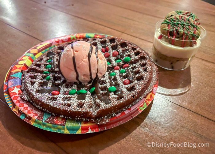 We stopped by Sleepy Hollow Refreshments to try a few treats there — the Holiday Waffle Sundae and the Milk and Cookies for Santa!