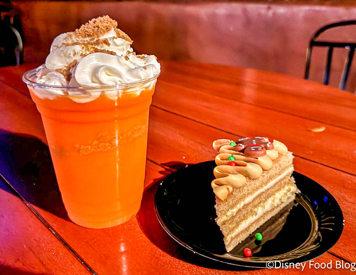 We also grabbed the Orange Gingerbread Shake from Golden Oak Outpost (non-alcoholic), which is an orange cream slushy layered with gingerbread cookie crumbles and topped with whipped cream, and gingerbread spice…