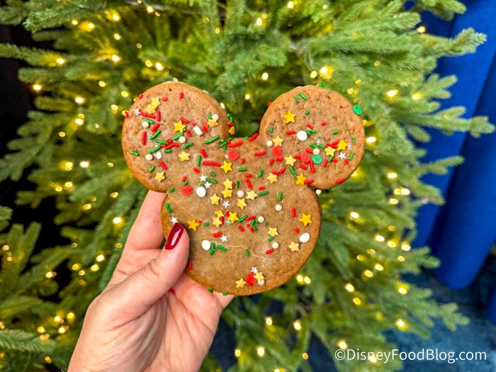 A Mickey-shaped gingerbread cookie with a thin icing glaze and sprinkles — what’s NOT to love?! Unsurprisingly, this has been a popular pick from us for kiddos in the past and it’s one we’re definitely keeping on the list this year. Note that it was at the Making Spirits Bright booth previously but can now be found at outdoor vending locations (and it looks a little different this year as well).
