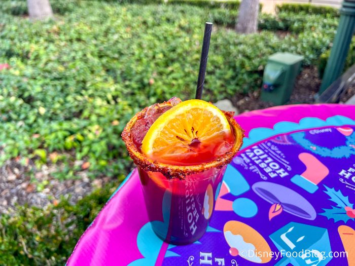 It was sweet, fruity, and delicious. The flavors at the forefront of this margarita are the coconut and lime. And the fun “champagne” bubbles candy are actually little gumdrops. We love how photogenic it is, too! You can grab it for $16.