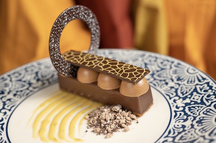 We counted SEVEN new menu items debuting at Tiffins and Nomad Lounge in Disney’s Animal Kingdom. We’re starting with dessert today, because LOOK at this new Champurrado Chocolate Bar. It will be available at Tiffins Restaurant, and we’re already daydreaming about this chocolatey treat.