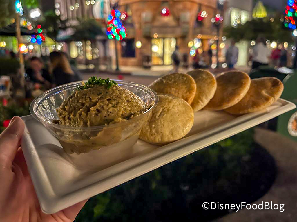 Disney describes this dish as potato barrels topped with gravy, brisket, mozzarella curds, and chives. Is there anything in this recipe line up that’s NOT to like? Well, we were a bit disappointed with this dish. The flavors and textures just didn’t work together as well as we wanted them to. The curds were also rubbery — which added an unpleasant texture to the dish. The brisket was inconsistent — good in some places but not so great in others. The tots were just regular ol’ tots. You can grab this dish at Dockside Diner for $6.49.