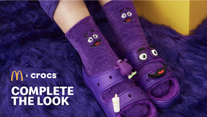 The wonderful and slightly terrifying purple monster has his own fuzzy Crocs now! These Grimace Cozzzy Sandals are lined with faux fur and feature a shake Jibbitz.