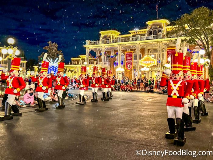 The Once Upon a Christmastime Parade is shown twice per party, at 8:30PM and 11PM.