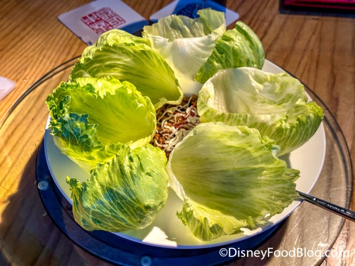 The Berkshire Pork Lettuce Wrap, which costs $16, is made with shitake mushrooms, bamboo, water chestnuts, hoisin sauce, and baby iceberg lettuce. The first thing we noticed was just how fresh and crunchy the lettuce was — it made a perfect vessel for this savory starter.