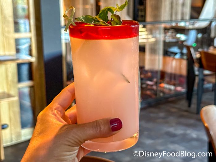 The Lychee Martini, which costs $17, is made with Absolute Vodka, lychee liqueur, and lychee berries. This drink had a creamy feel and it is well balanced. You can taste the vodka in it, but it pairs nicely with the lychee which adds a sweetness to the drink. One of our reporters said this is one of their favorite drinks in Disney World.