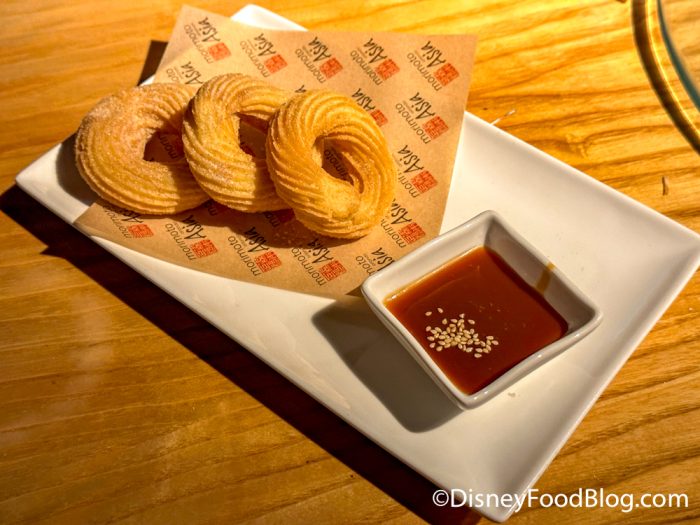 Now, we had to leave room for dessert when we saw these Churro Donuts for $14. These donuts were covered in cinnamon sugar and came with a white miso caramel dipping sauce. With each order, you get 3 donuts.