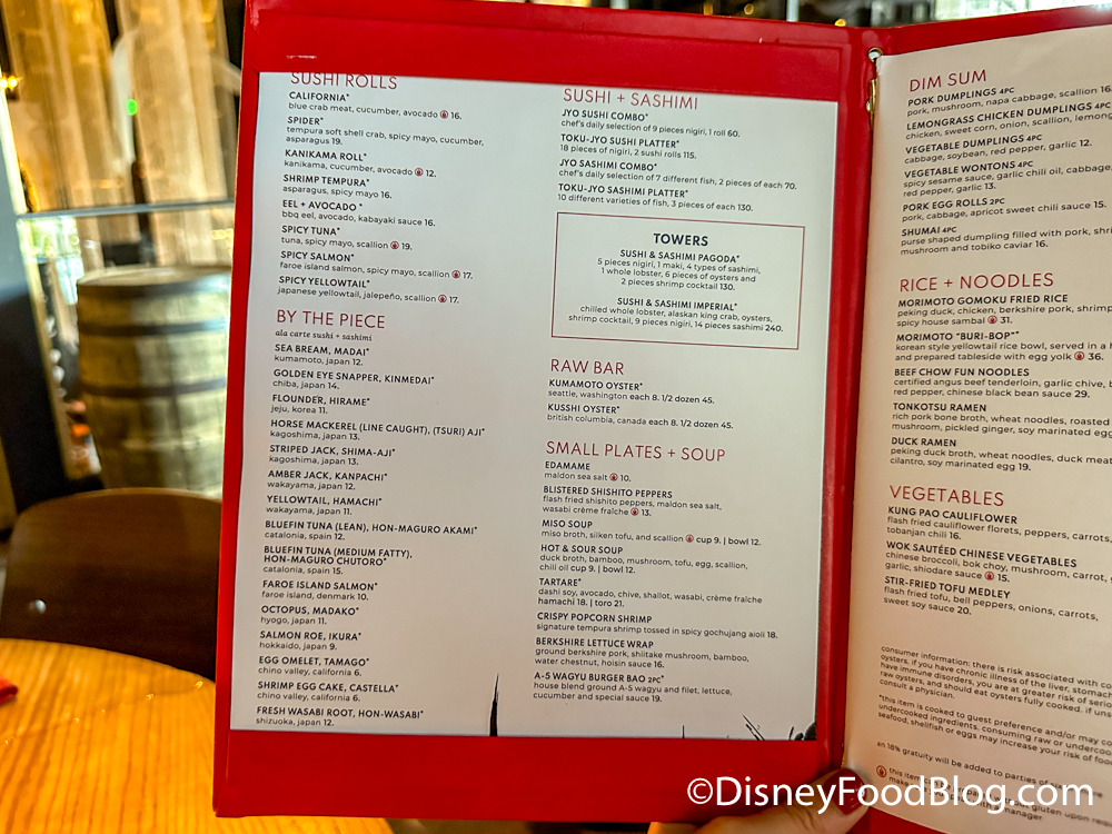 Our family of six used to consider Morimoto’s Asian our favorite restaurant in all of Disney, and we went there often. When we started returning again after Covid, we noticed immediately that the portion sizes had shrunk tremendously, but the prices, of course, had not. We used to get four of the ribs in a serving, but it looks like in the picture there are only two now. Lettuce wraps would be a waste of money with only a teaspoon of filling in each one. The sushi rolls we have had recently have been probably less than a quarter in size, maybe closer to a large nickel, for each piece. We don’t mind spending money for a great meal, but after the last time, we decided maybe this wasn’t the place for us anymore. We were at Disney two weeks ago, and we found a new restaurant in Epcot that we really enjoyed called Shiki Sai. I wish I could send you pictures – the portions for the food were perfect, and the service was impeccable. We got almost twice as much food as we did at Morimoto’s, and it was wonderful! This may be our new go-to Asian restaurant from now on!