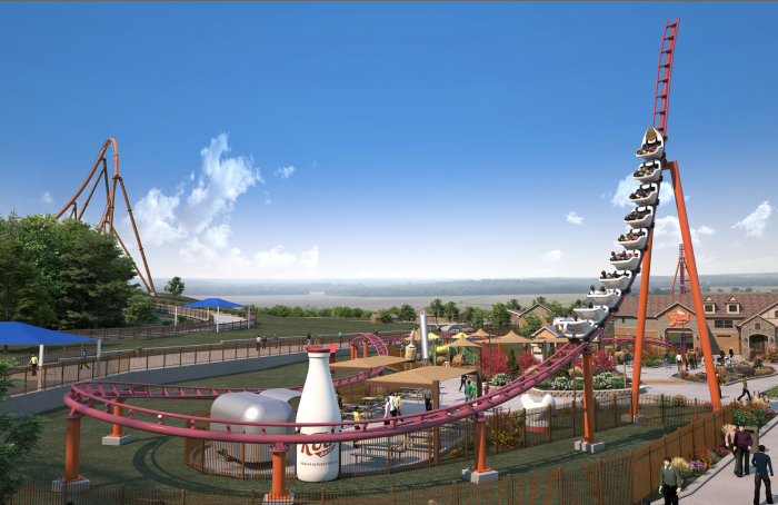You will whiz past kitchen ingredients and tools like a whisk, a rolling pin, a timer, a box of stuffing, and the best part: a tunnel depicting A GIANT CAN OF CRANBERRY JELLY! We don’t even have words…this ride sounds amazing already. This ride will be 1,500 feet in length, 77 feet tall at the highest point, have a 38″ height requirement, and will have a top speed of 37 mph. This family gravy-themed roller coaster is set to open in May 2024.