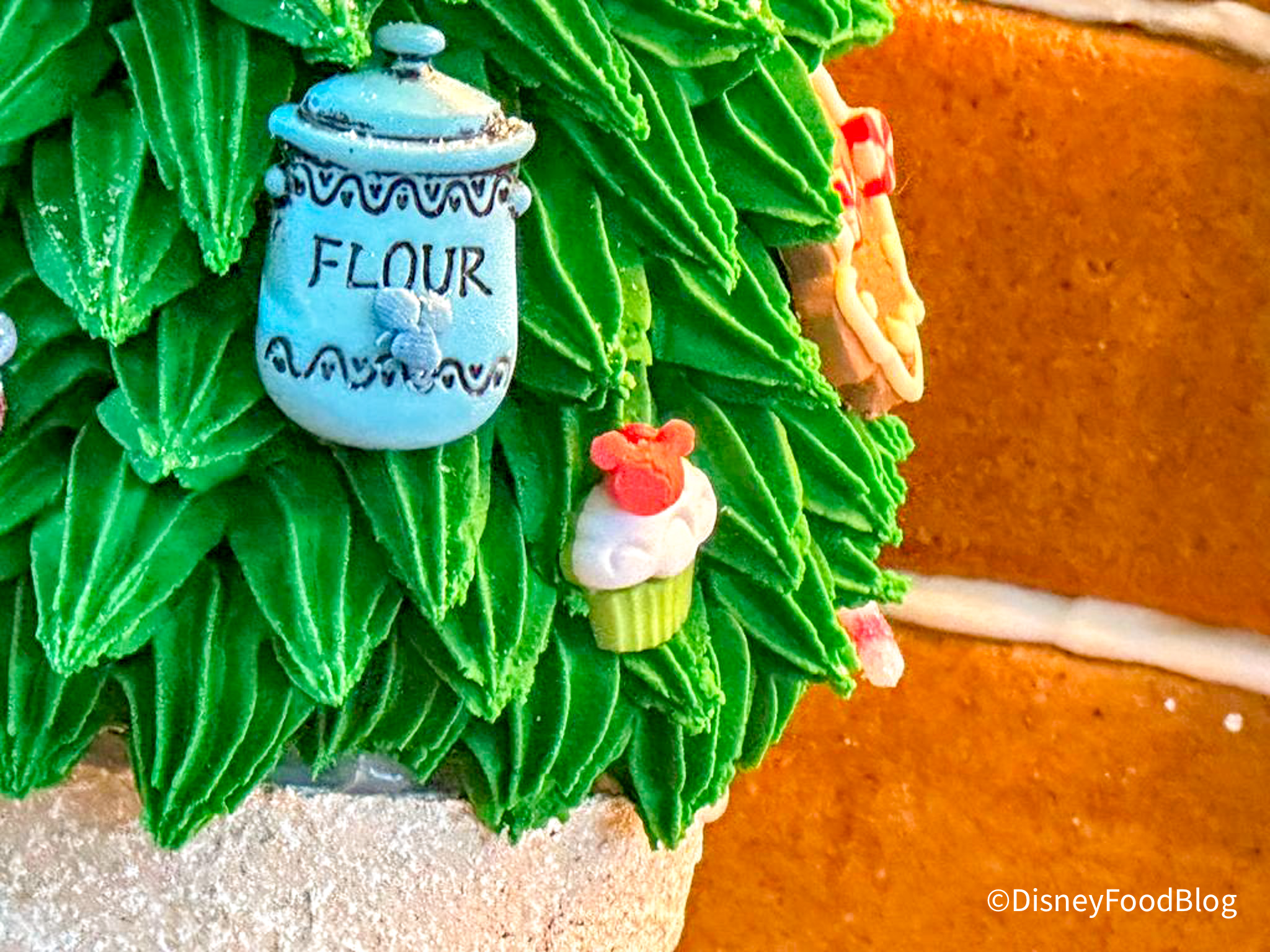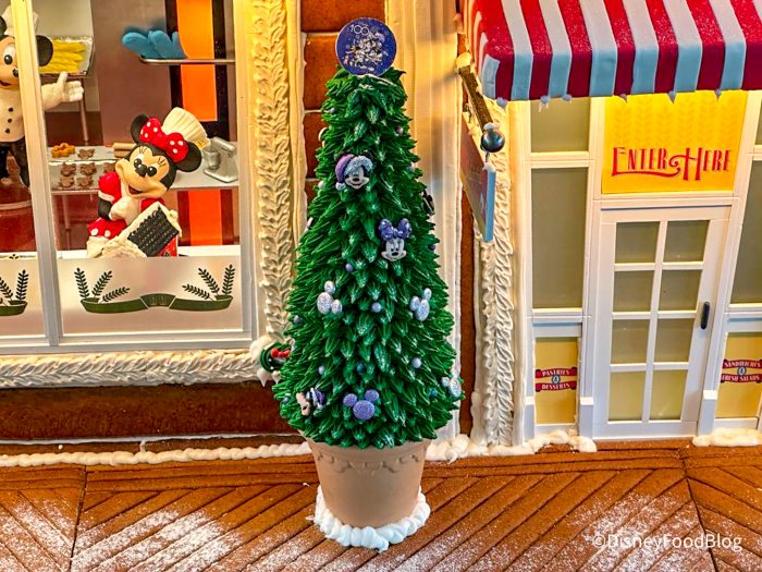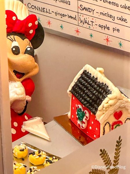 The gingerbread deli looks impeccable from a distance, but once you look up close you get a sense of the painstaking details that are truly breathtaking. If you zoom in on the bakery window, you’ll see a famous mouse couple making some delicious treats. Seriously, notice the details inside this room!
